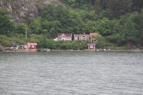 Da wir gerade durch die Norrköping vorgelagerte Inselwelt fahren, beschließe ich, meinen Inspektionsrundgang später fortzusetzen und begebe mich an Deck. Dort ziehen die berühmten schwedischen Holzhäuser, teilweise im klassischen „Falun-red“, vorbei.