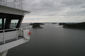 Nachdem um 21:00 Uhr der Lotse an Bord gekommen ist, beginnt die Einfahrt in den Stockholmer Schärengarten, leider immer noch bei Nebel und zunehmender Dunkelheit, schade. Ich beschließe, den Rest des Tages mit geschlossenen Augen in meiner Koje zu verbringen.