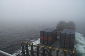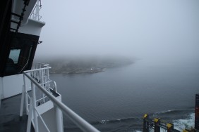 Es hat zwar inzwischen aufgehört zu regnen, aber das insgesamt schlechte Wetter trübt den Eindruck. Am späten Nachmittag kommt dann sogar noch Nebel auf, zeitweise ist der Vormast von der Brücke aus nicht mehr zu sehen.