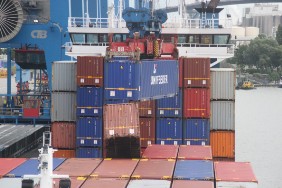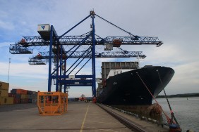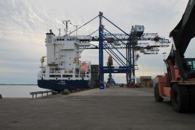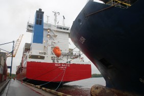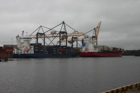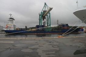Leider fängt es um 10:00 Uhr an zu regnen. Eigentlich wollte ich noch etwas in der Stadt bummeln, die Geschäfte öffnen schließlich jetzt auch erst. Nun aber ziehe ich es vor, mit dem Taxi zurück zum Hafen zu fahren. Also wieder zu Fuß weiter die restlichen ca. 300 m zum Schiff. Dort gehen natürlich auch bei Regen die Ladearbeiten weiter.