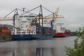 Trotz der späten –oder frühen- Stunde, lasse ich mir das Einlaufen in Gävle um 02:00 Uhr nicht entgehen. Die Nacht ist ausgesprochen ruhig, im Hafen Gävle wird nachts nicht be- bzw. entladen. Erst um 07:00 Uhr beginnt der Betrieb mit einer Brücke. Der Containerhafen in Gävle ist recht klein, die Container sind zwischen den Gleisen der beiden vorhandenen Verladebrücken abgestellt. Das bedingt natürlich, dass die Brücken immer wieder hin- und herfahren müssen. Um 09:00 Uhr läuft ein weiterer Feeder ein, die NAVI BALTIC, und macht direkt vor uns fest. Warum diese allerdings eine Schlepperhilfe benötigt, bleibt mir unklar.