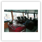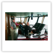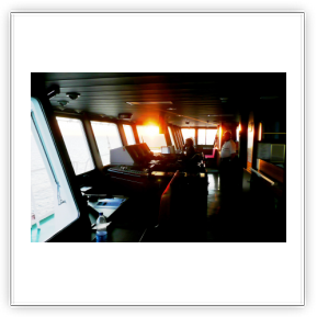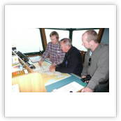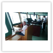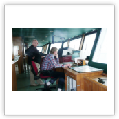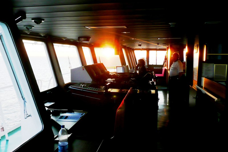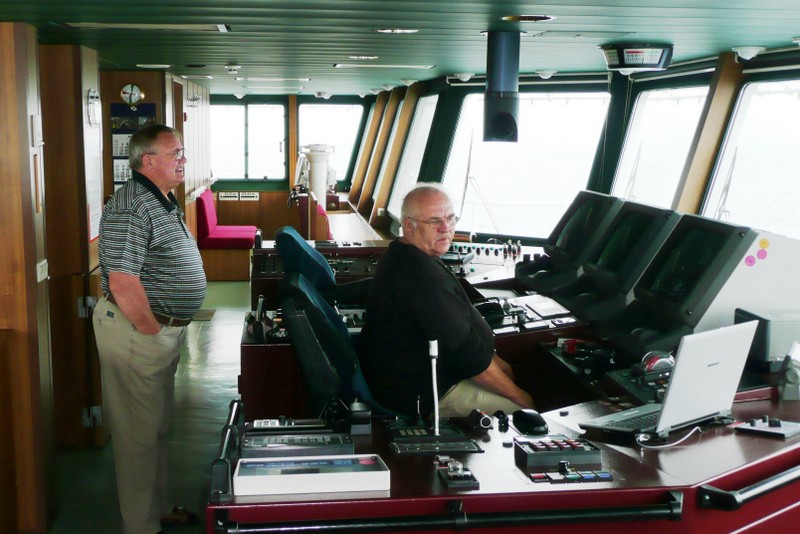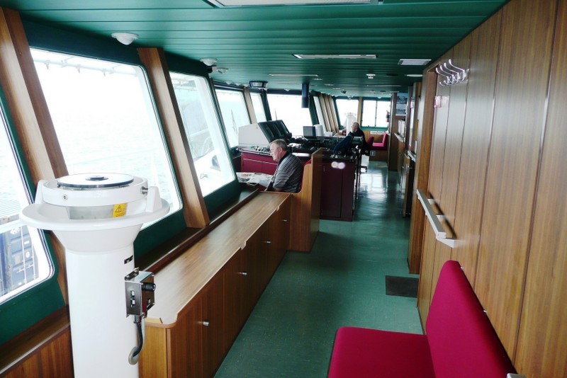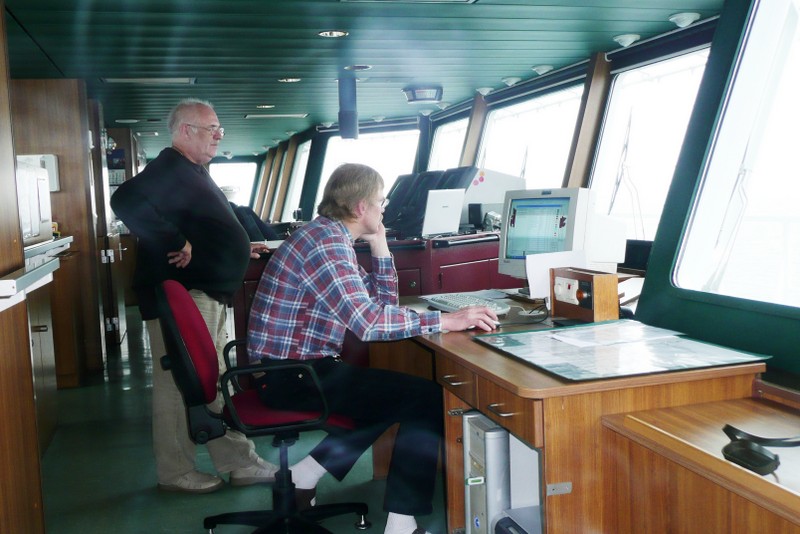Von der Brücke hat man einen herrlichen Ausblick nach vorne und nach beiden Seiten des Schiffes. Wir konnten die Brücke der "Nathalie Ehler" zu jeder Zeit problemlos betreten. Auf See ist es natürlich auch möglich in den bequemen Sesseln am Fahrstand Platz zu nehmen, um dann ganz entspannt die Reise zu genießen. Sehr interessant sind natürlich auch die zahlreichen nautischen Instrumente. Fragen dazu werden vom Kapitän oder dem wachhabenden Offizier immer sehr gerne beantwortet. Man ist also immer bestens über den Kurs, Standort (auf der elektronischen Seekarte) und die sogenannte ETA (Estimated time of arrival... die voraussichtliche Ankunftszeit im angesteuerten Hafen) informiert. Selbstverständlich kann man am Kartentisch auch einen Blick in die gute alte Seekarte werfen.