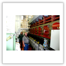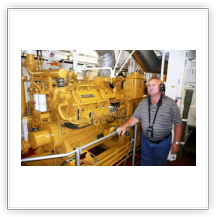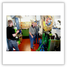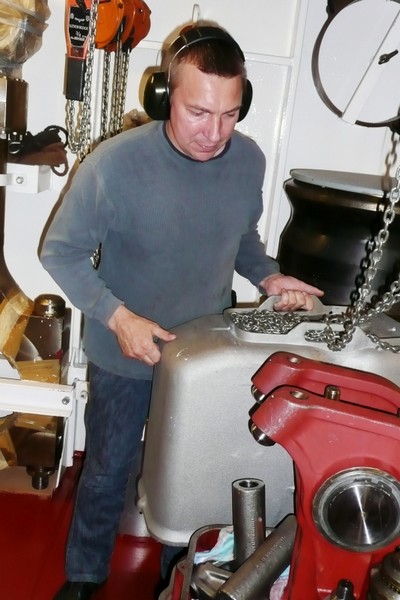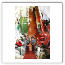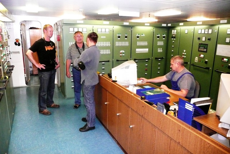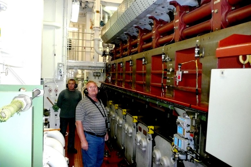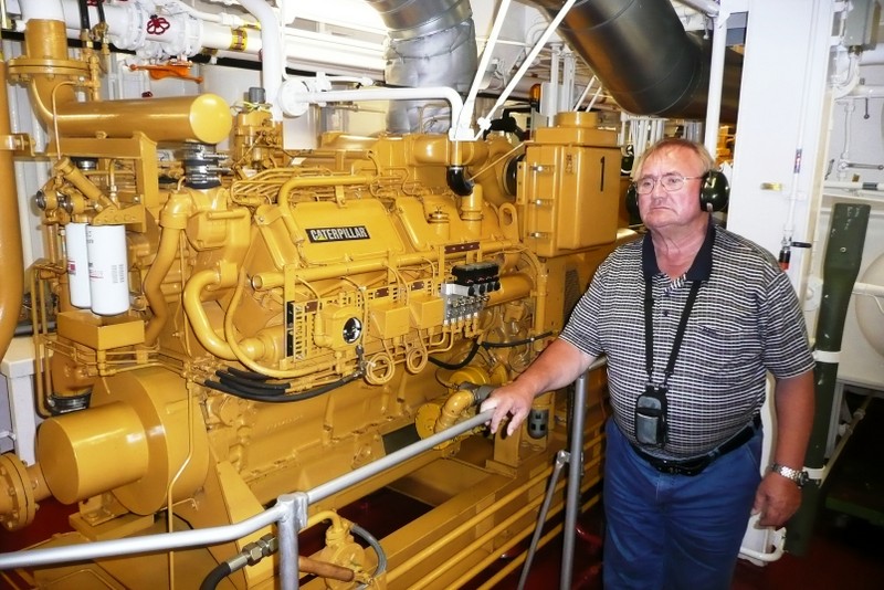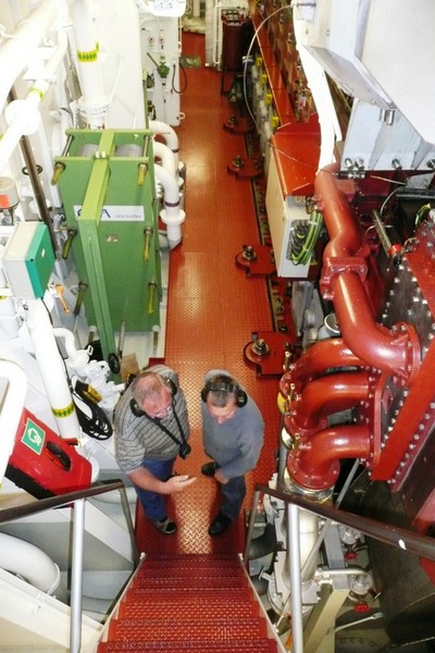 Eine Besichtigung der Maschine war auf der "Nathalie Ehler" kein Problem. Was einem in der Maschine des Schiffes sofort ins Auge sticht, ist die absolute Sauberkeit. Das ist die Handschrift des "Chiefs", dem Leitenden Ing.. Eine Besichtigung während der Fahrt ist trotz Ohrenschützer wegen des ohrenbetäubenden Lärms nicht anzuraten, weil eine Verständigung kaum möglich ist. Man sollte die Maschine nach Absprache mit dem "Chief" während der Liegezeit in einem Hafen besichtigen, es ist dann weniger laut.