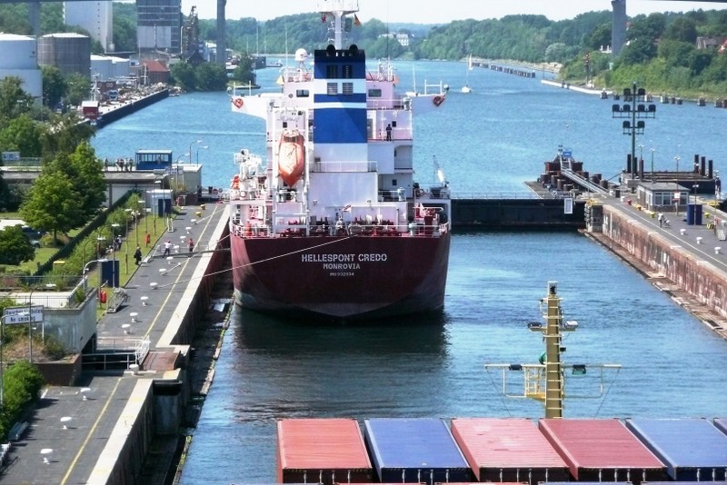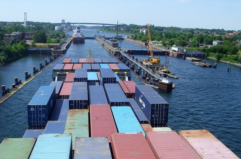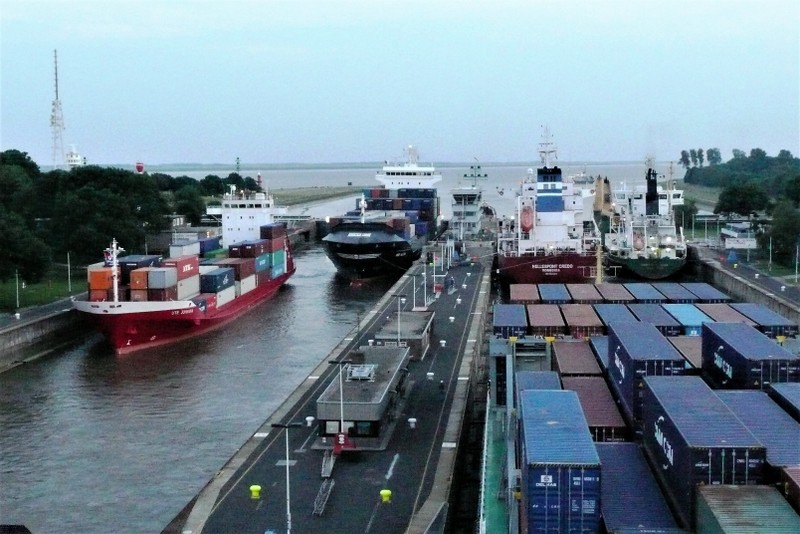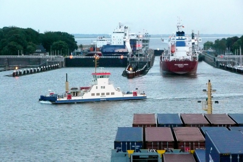 Da ein kräftiger Nord-West Wind herrschte, forderte Kapitän Wulff einen Schlepper zur Unterstüzung des Einlaufmanövers in die Schleuse an. Die Schleusung war um 19.00 Uhr beendet und wir liefen in den Kiel-Kanal ein.